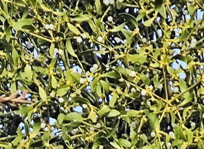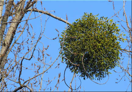 Bei dieser Pflanze lohnt sich eine genaue Betrachtung. Die Mistel ist ein ausdauerndes Gewächs, welches in der Krone von Laubgehölzen wie Pappel, Birke, Weide, Linde oder auch auf Apfelbäumen lebt. Ihre Wurzeln dringen in die Leitungsbahnen ihrer Wirtspflanze ein und entnehmen dort Wasser und Nährstoffe, in der Regel ohne ihre Wirtspflanze übermäßig zu schädigen. Botanisch gesehen ist die Mistel ein Parasit. Ihre kugelige Form erhält die Mistel, weil sie ungeachtet des Lichteinfalls in alle Richtungen wächst. Sie wächst relativ langsam. Pflanzen mit 50 Zentimeter Durchmesser sind ungefähr 30 Jahre alt. Misteln sind zweihäusig. Weibliche Pflanzen tragen die durchscheinenden weißen Beeren, die giftig sind. Es gibt mehr als 30 Viscum-Arten. In Mitteleuropa ist überwiegend die Weißbeerige Mistel vertreten.